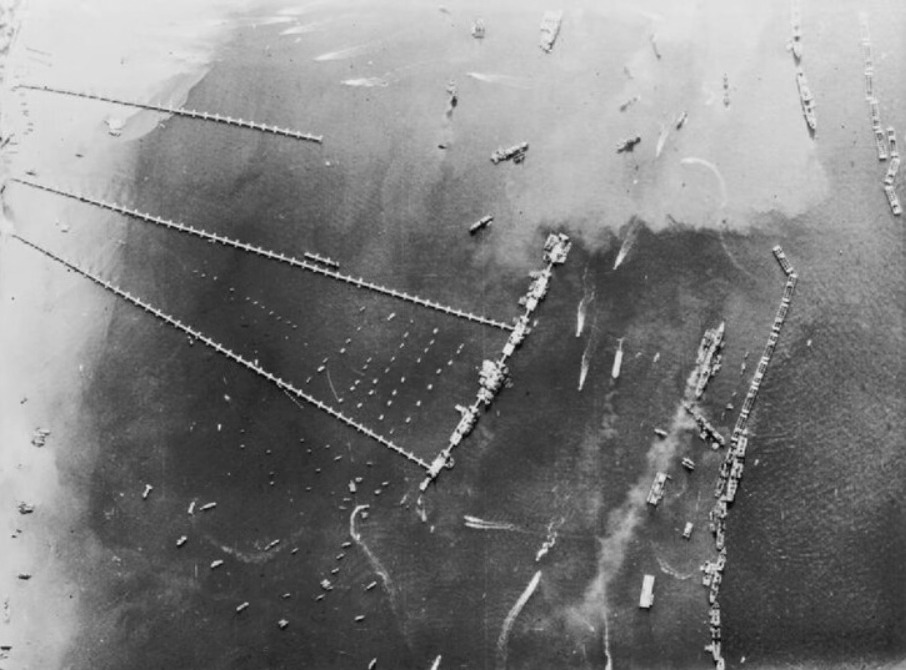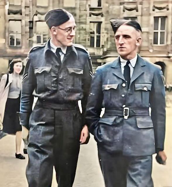 Today is June 9th, which 80 years ago was D+3. My father, Bryn Moore of Llangeinor, (that’s him on the left in the picture – he was a corporal in the RAF) arrived at the Mulberry harbour at Arromanches, on Gold beach, 80 years ago today. The point at which ships unloaded was connected to the beach by about 500 metres or more of floating pontoons. Bryn’s job was to drive an RAF radio truck from the ship, along the pontoons, to the beach. My best guess is that it was a 3 ton Bedford or Commer, a bit like that in the picture, though it is difficult to know with any exactness.