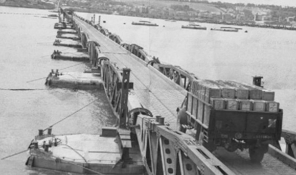 The third, and possibly trickiest problem, was that the lorry was loaded the wrong way around, and there was no room to turn. This meant that the lorry had to be reversed over 500+ metres of floating pontoon lurching violently, with the knowledge that a bump from a tank could easily knock it into the drink.